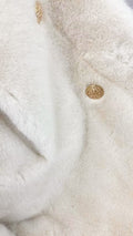 Made from high-quality faux fur, this full-length coat features a luxurious, soft texture that exudes elegance. The coat is designed with a chic double-breasted front and ornate gold buttons, offering both style and function. The oversized collar adds a timeless appeal, and when buttoned up fully, it transforms into a cozy turtleneck for extra warmth and a sleek, modern look. The sleek fit ensures you'll stay cozy without sacrificing fashion. Available in neutral tones, this coat pairs perfectly with jeans for a casual look or can elevate a dressy ensemble for an evening out. Ideal for the colder months, this coat is your new go-to for refined winter style.