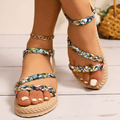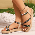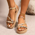 Step into sun-kissed boho style, featuring chic handwoven straps and a soft, flexible fit that moves with you. Designed with an elastic ankle strap and cushioned insole, they’re your must-have essential for spring and summer.