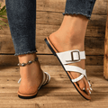 Crafted with chic leather straps and a secure clip-toe design to prevent slipping. The cushioned insole and non-slip outsole offer superior support, while the sleek buckle closure adds a touch of elegance to your every step.