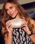The perfect finishing touch to your spring event look, the Eiden Pearlized Shell Clutch is just what you need. With its luminous, pearl-like acrylic finish and sleek shell silhouette, this clutch is the perfect mix of chic and playful. Whether you're attending a garden wedding or a rooftop party, it adds just the right amount of shine to elevate any outfit. The magnetic clasp closure keeps your essentials secure, while the optional shoulder strap lets you go hands-free when the dance floor calls.