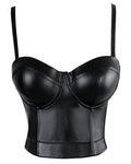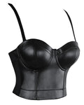 This high-quality faux leather crop top features stylish straps and a corset-style design that enhances your silhouette. With a push-up effect to highlight the bust and a modern length, it’s perfect for lingerie use or as a bold statement piece for any occasion.