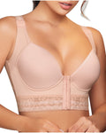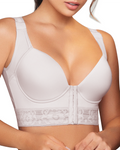 The front hook-and-eye closure makes it easy to wear and adjust, enhancing your bust’s natural shape while the wireless design and integrated mesh cups provide seamless support and all-day comfort.