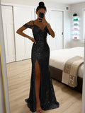 Zaprada long dress v-neck shiny sequin split side split shoulders sleeveless elegant woman evening ceremony