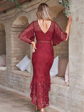 Zaprada long lace swallowtail mermaid dress with round neckline, trumpet sleeves, and short sleeves for women, elegant wedding guest attire