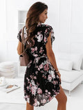 Zaprada mid-length floral V-neck pleated belted short-sleeved bohemian women's beach wedding guest dress